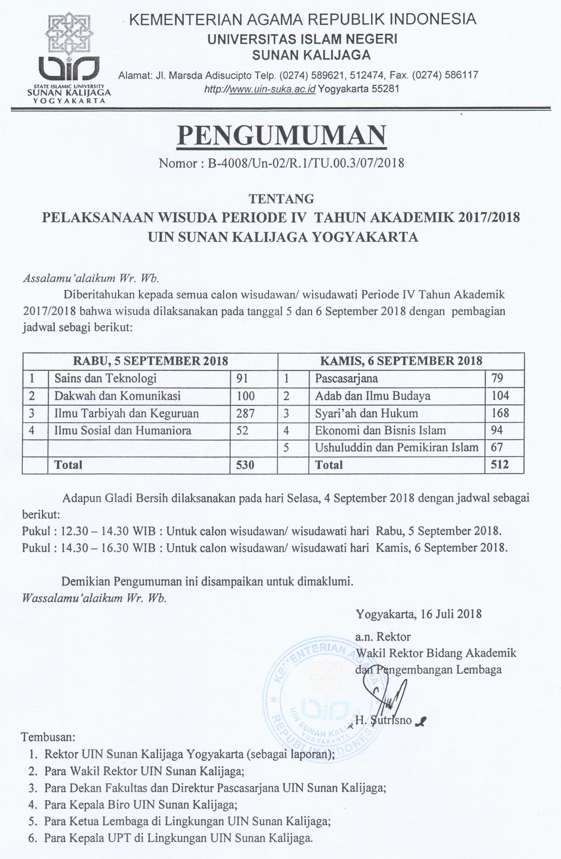 Jadwal Pelaksanaan Wisuda Periode V T.A.2017/2018 Rabu, 18 Juli 2018 09:00:50 WIB Dilihat : 4630 Kali Unduh