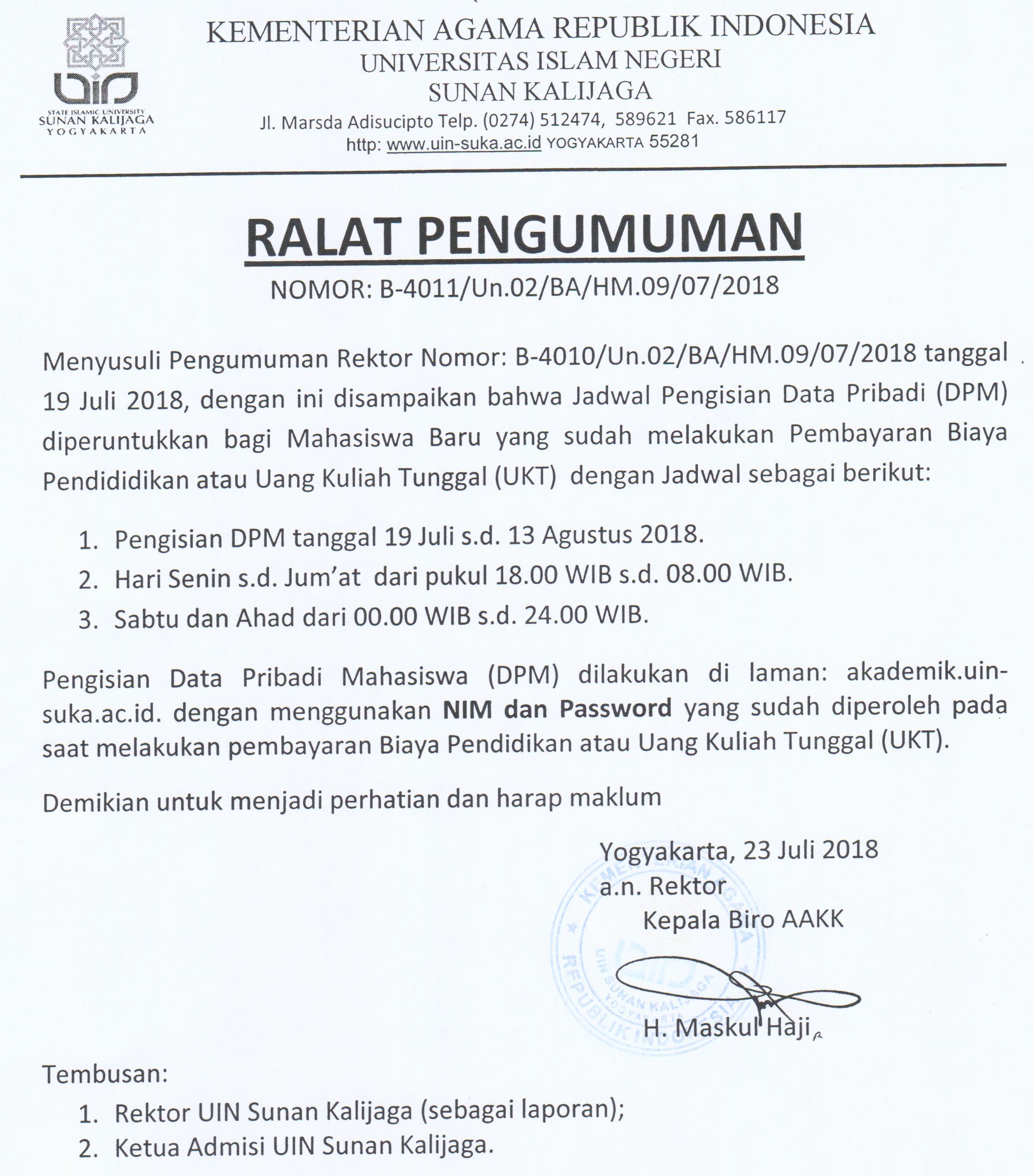 Ralat Pengumuman Mengisi Data Pribadi Mahasiswa (DPM) Untuk S1, S2, S3 T.A. 2018/2019 Senin, 23 Juli 2018 11:43:35 WIB Dilihat : 8085 Kali Unduh