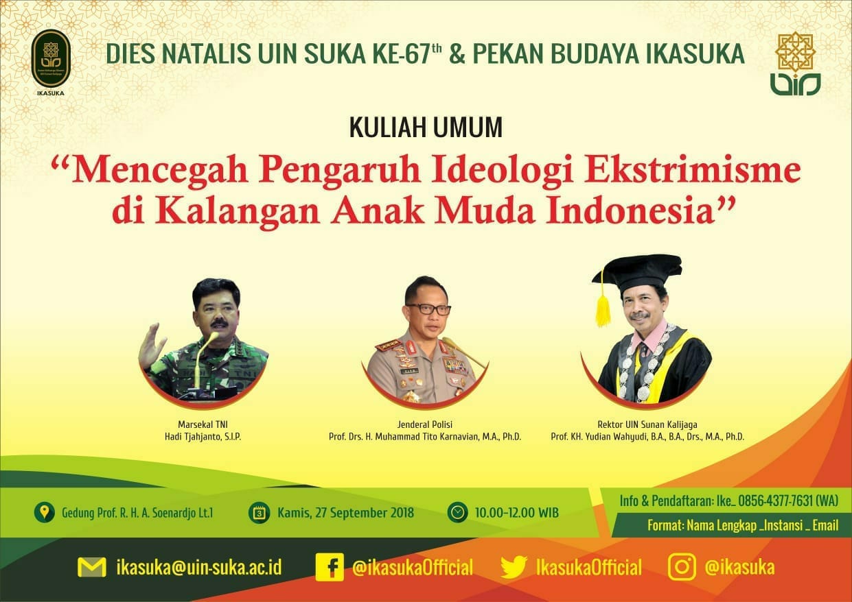 Kuliah Umum "Mencegah Pengaruh Ideologi Ekstrimisme di Kalangan Anak Muda Indonesia" Selasa, 25 September 2018 09:40:54 WIB Dilihat : 2600 Kali Unduh