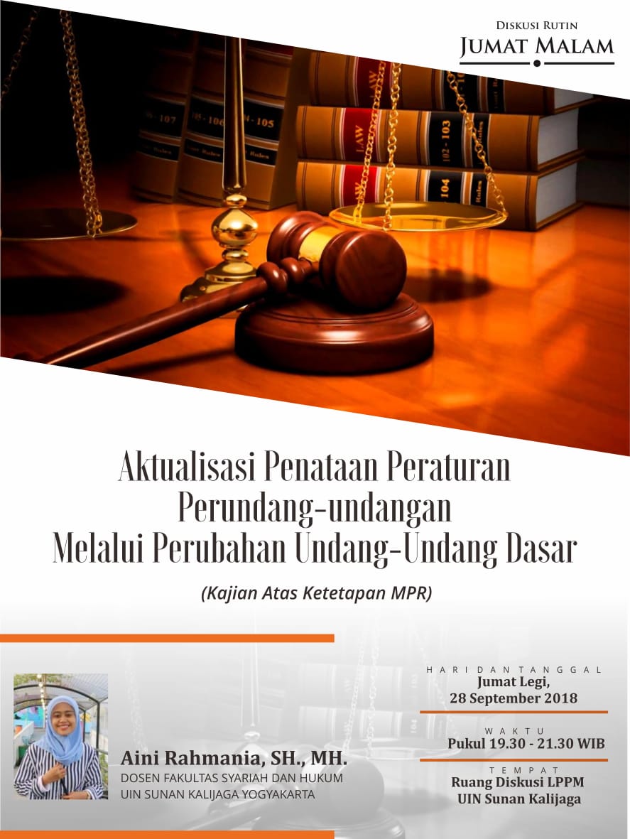 Diskusi Rutin Jumat Malam" Aktualisasis Penataan Peraturan Perundang-undangan Melalui Perubahan Undang-undang Dasar" Jumat, 28 September 2018 16:02:53 WIB Dilihat : 2858 Kali Unduh