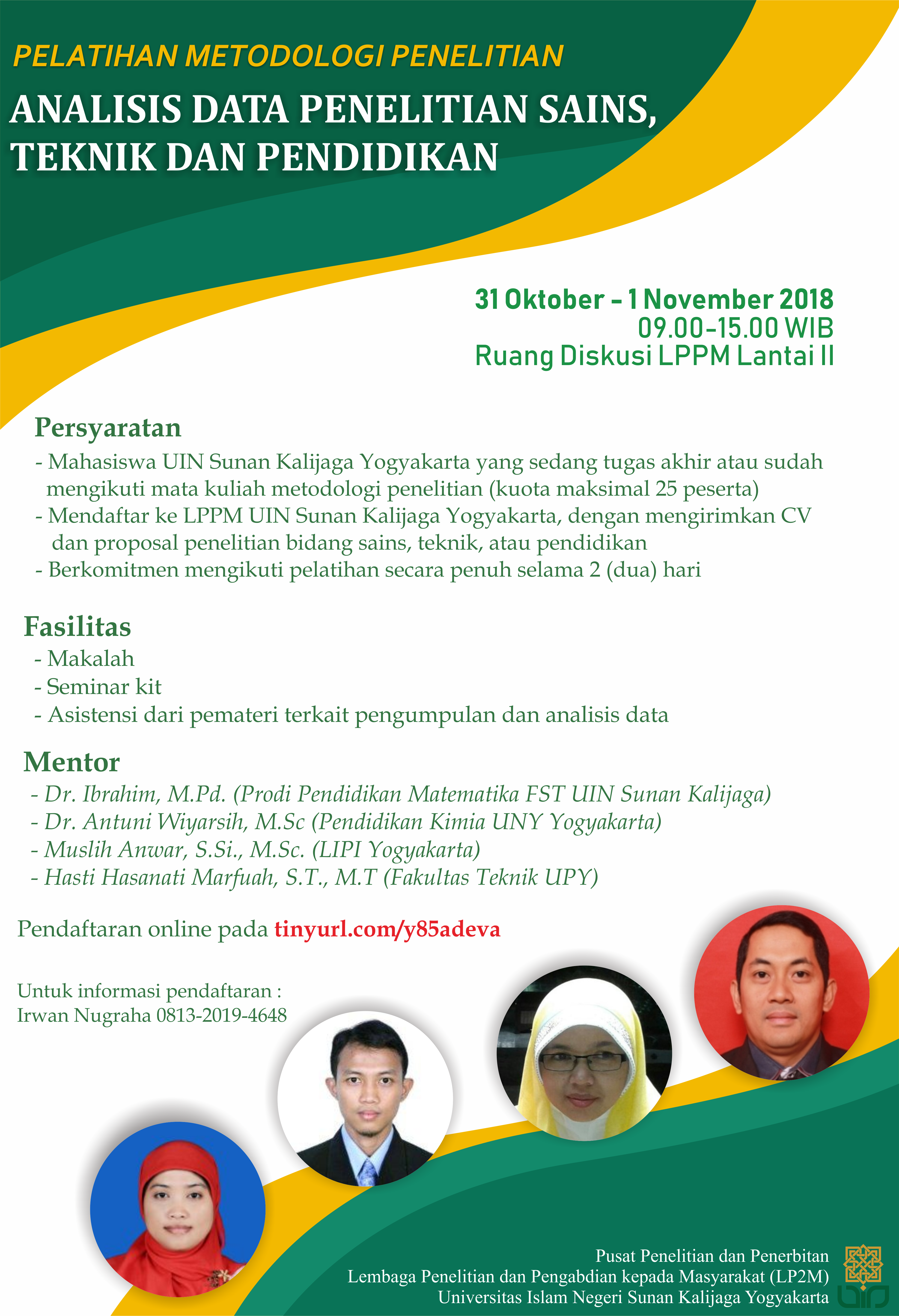 Pelatihan Metodologi Penelitian Analisis Data Penelitian Sains, Teknik Dan pendidikan Rabu, 24 Oktober 2018 16:47:57 WIB Dilihat : 4004 Kali Unduh