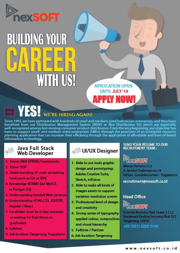Loker Web Developer and Designer: nexSOFT Kamis, 1 November 2018 15:51:27 WIB Dilihat : 1732 Kali Unduh