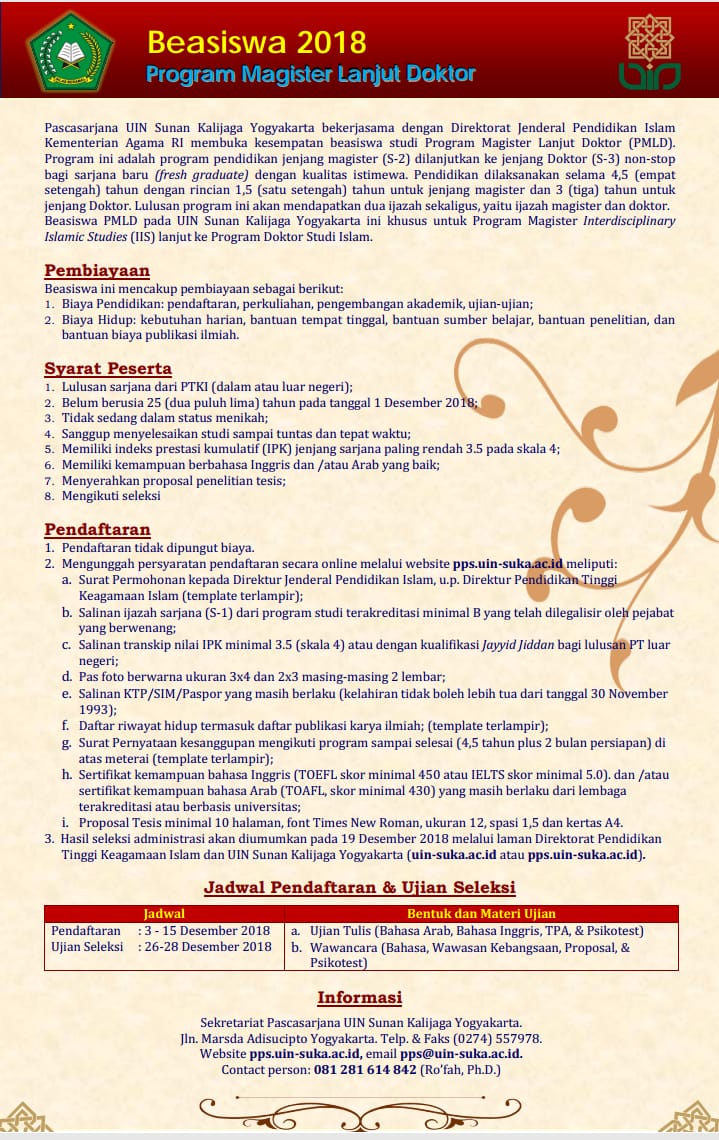 Beasiswa Program Magister Lanjut Doktor Tahun 2018