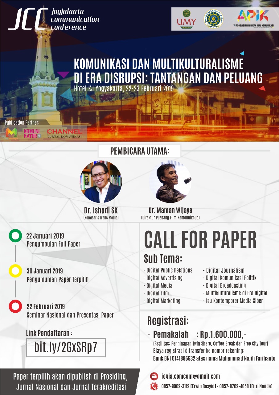 Call For Paper "Komunikasi Dan Multikulturalisme Di Era Disrupsi: Tantangan Dan Peluang" Rabu, 2 Januari 2019 08:16:11 WIB Dilihat : 4646 Kali Unduh