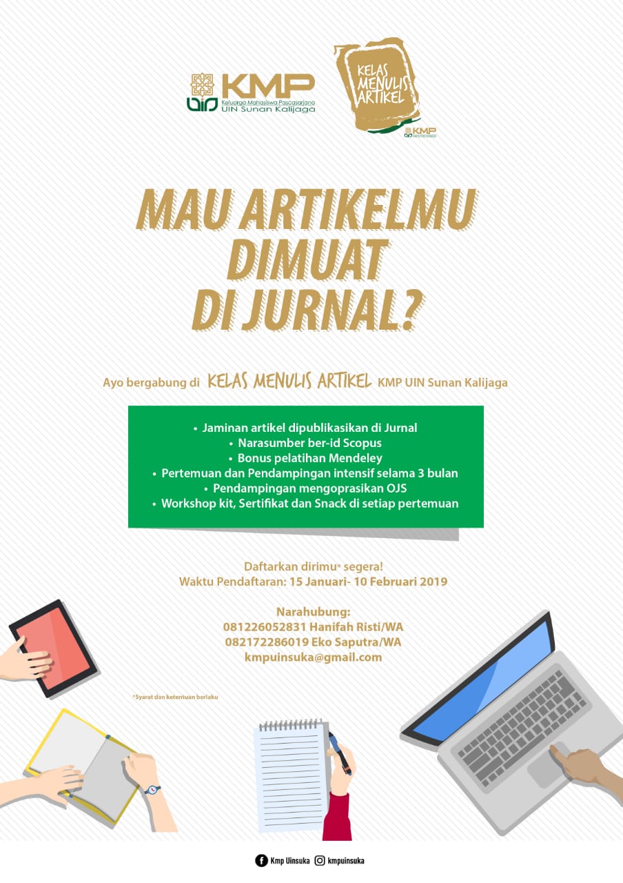 Mau Artikelmu Dimuat Di Jurnal? Bergabung Di Kelas Menulis Artikel KMP UIN Sunan Kalijaga Rabu, 23 Januari 2019 15:12:16 WIB Dilihat : 2950 Kali Unduh
