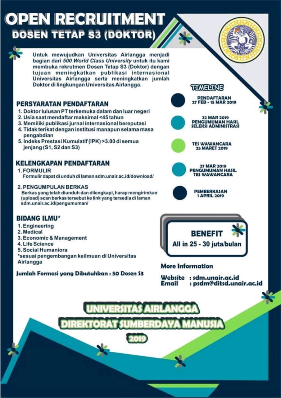Open Recruitment Dosen Tetap Doktor (S3) Universitas Airlangga Tahun 2019