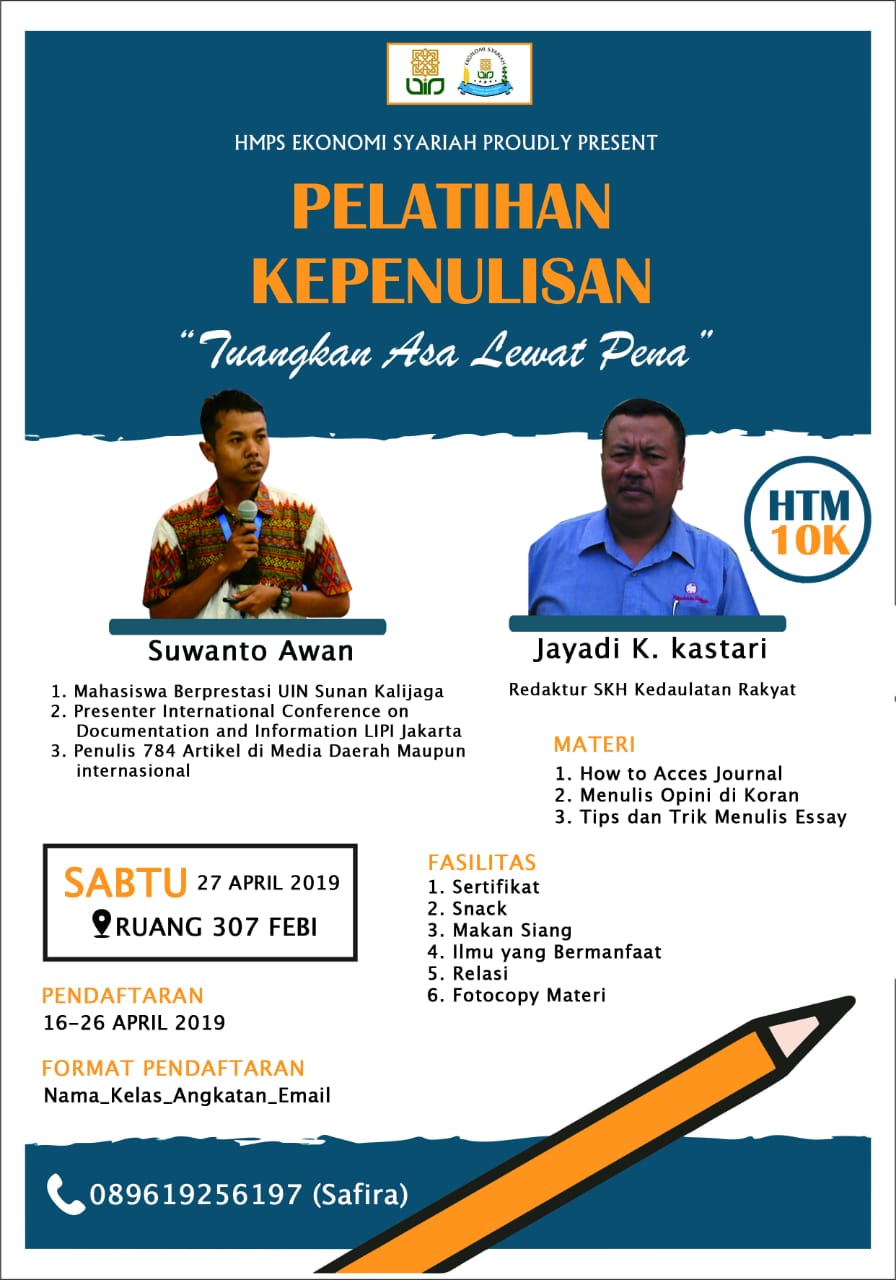 Pelatihan Kepenulisan"Tuangkan Asa Lewat Pena" Kamis, 25 April 2019 08:47:11 WIB Dilihat : 3212 Kali Unduh