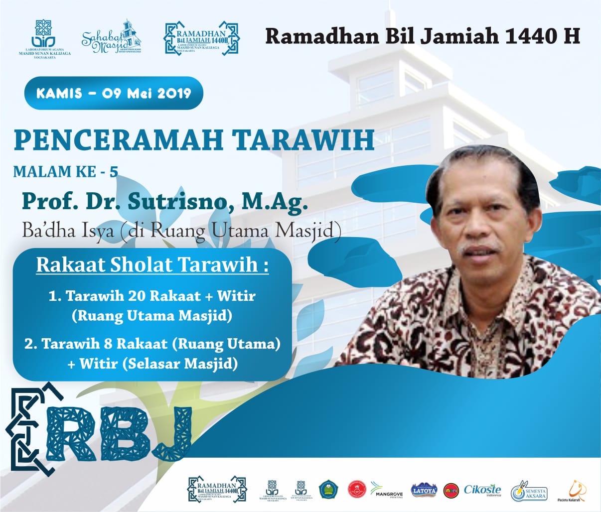 Penceramah Tarawih Malam Ke-5 Prof. Dr. Sutrisno, M.Ag. Ramadhan Bil Jamiah 1440 H
