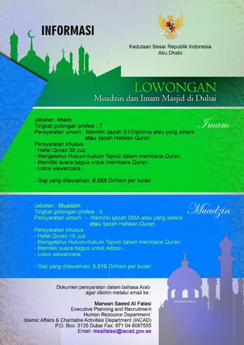 Lowongan Muadzin dan Imam Masjid di Dubai