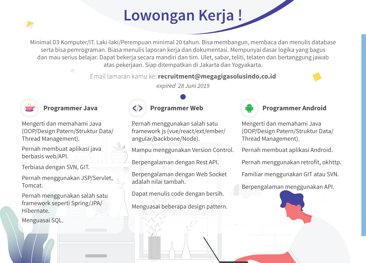 Lowongan Kerja Programer Java, Web, & Android Selasa, 11 Juni 2019 16:28:06 WIB Dilihat : 2362 Kali Unduh