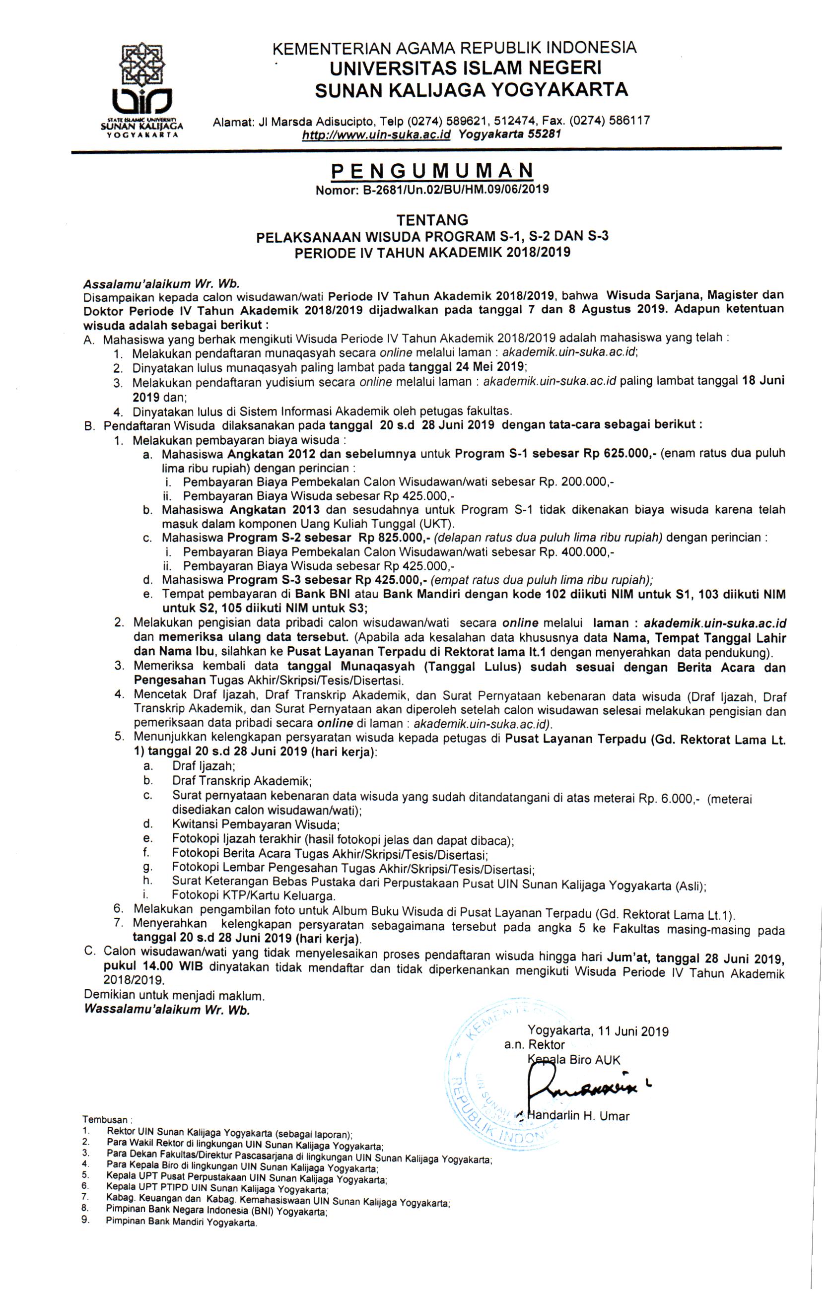 Pelaksanaan Wisuda Program S-1,S-2 Dan S-3 Periode IV T.A. 2018-2019 Rabu, 12 Juni 2019 16:34:13 WIB Dilihat : 2749 Kali Unduh