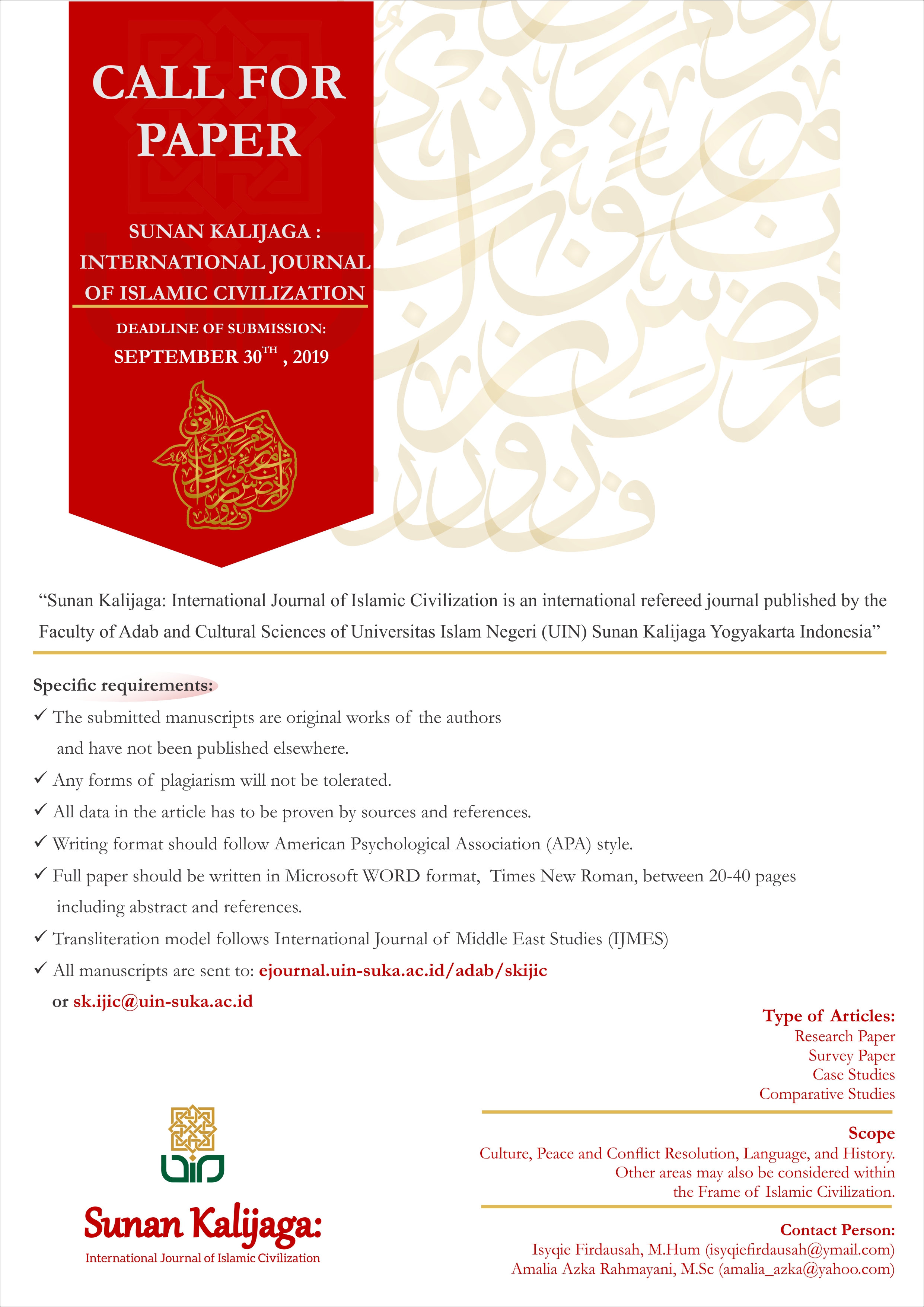 Call For Paper Sunan Kalijaga: Internasional, Journal Of Islamic Civilization Senin, 22 Juli 2019 10:42:10 WIB Dilihat : 3915 Kali Unduh