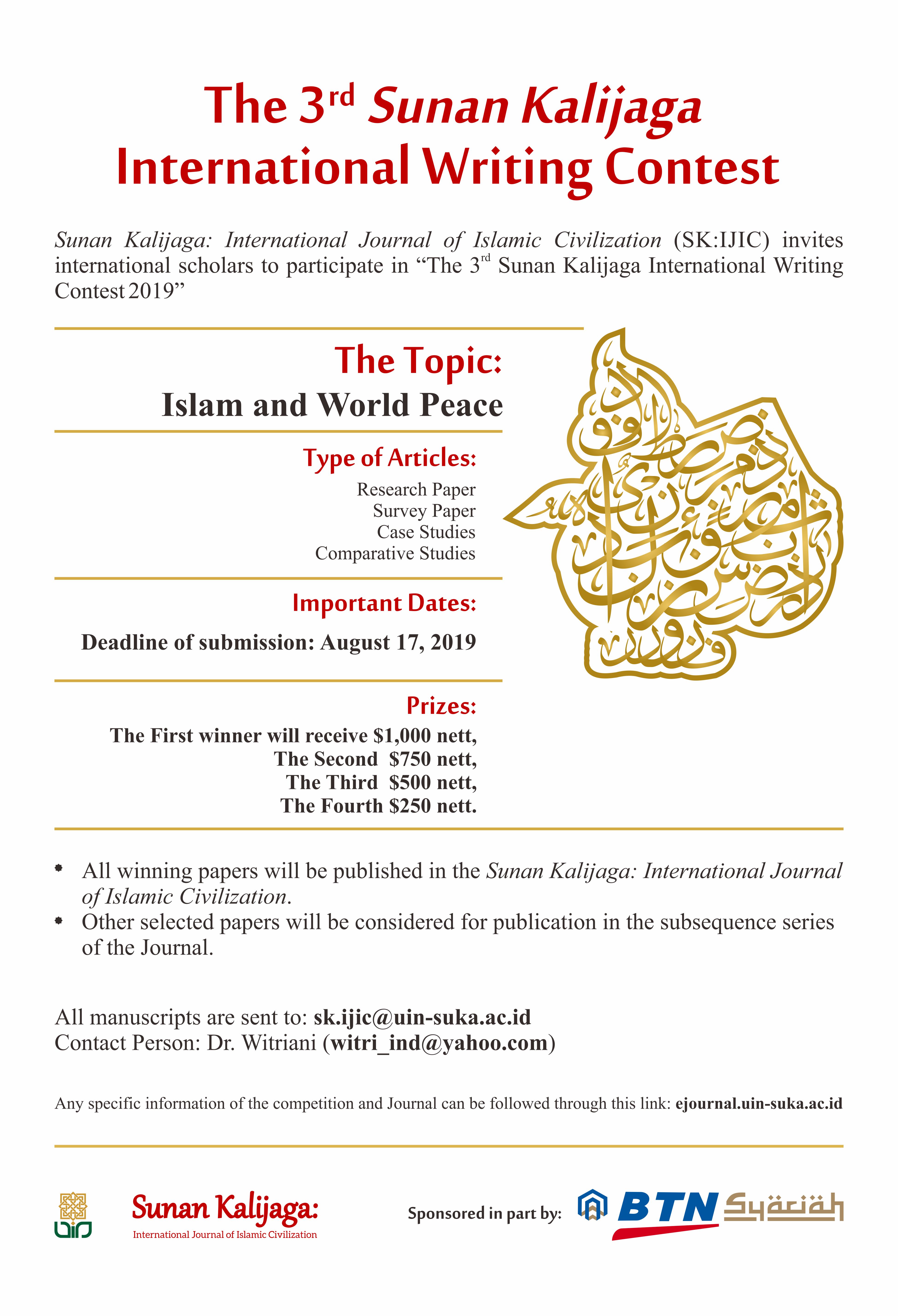 The 3rd Sunan Kalijaga International Writing Contest Senin, 22 Juli 2019 10:48:27 WIB Dilihat : 2417 Kali Unduh