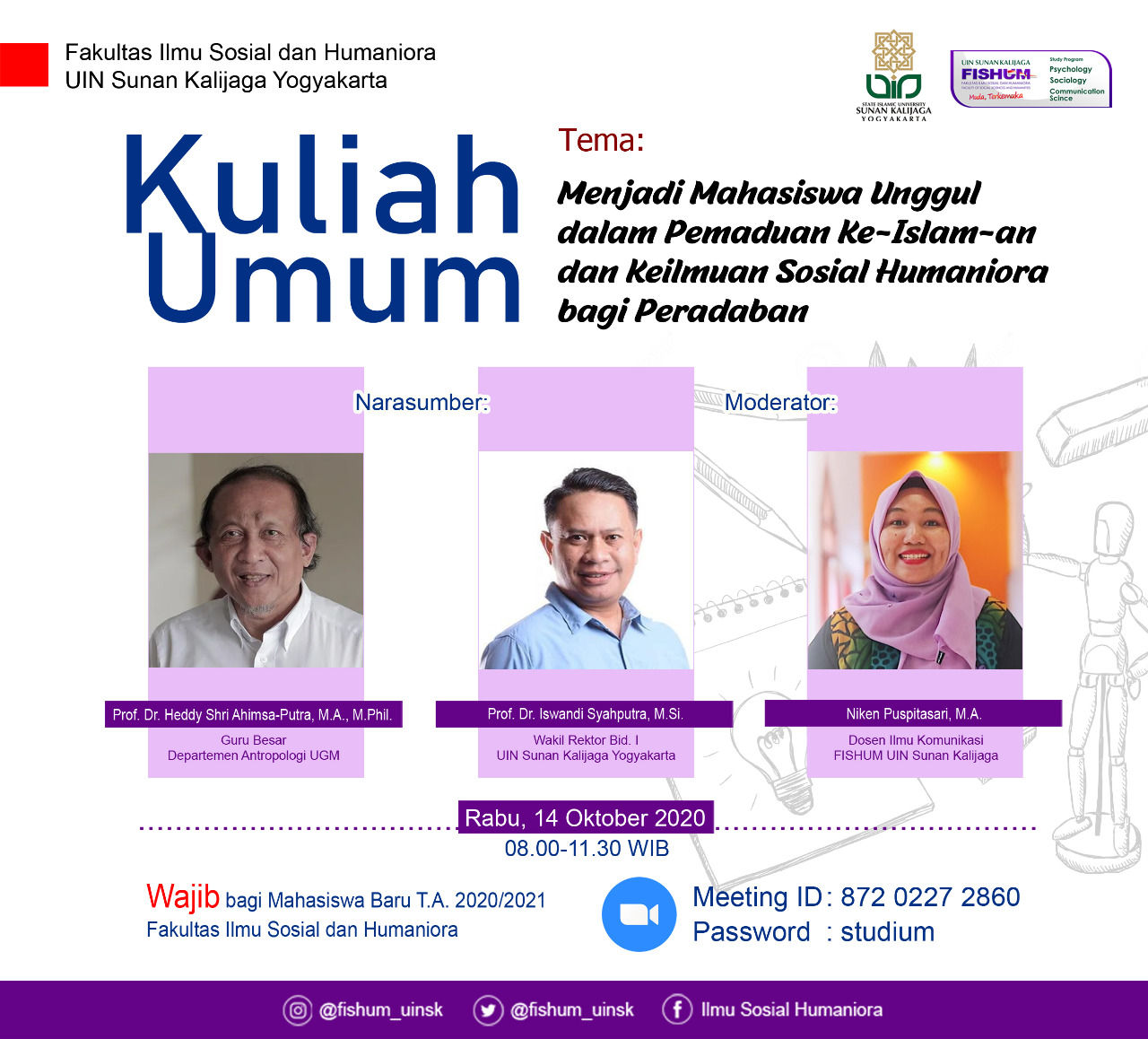 Kuliah Umum "Menjadi Mahasiswa Unggul Dalam Pemaduan Ke-Islam-an dan Keilmuan Sosial Humaniora bagi Peradaban" Senin, 12 Oktober 2020 11:27:07 WIB Dilihat : 2136 Kali Unduh